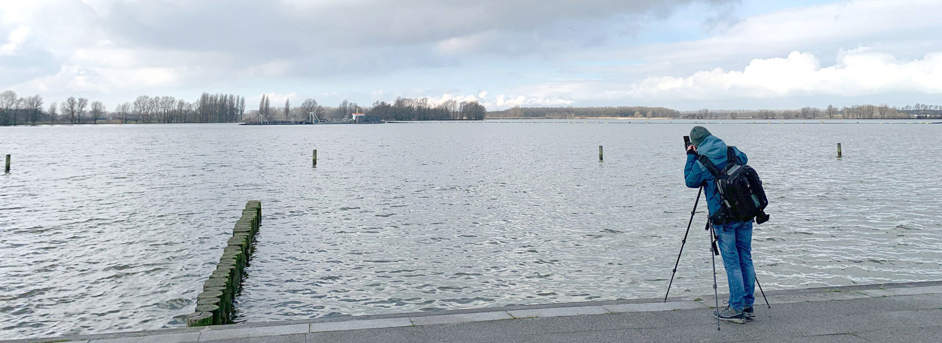 Er wordt gefotografeerd bij het Valkenburgse Meer (Zuid Holland).